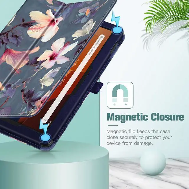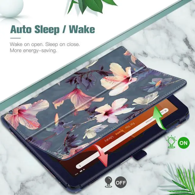 Fintie Folio Case for All-New Amazon Fire HD 10 and 10 Plus Tablet (13th/11th Generation, 2023/2021 Release) - Slim Fit Standing Cover with Auto Sleep/Wake, Blooming Hibiscus