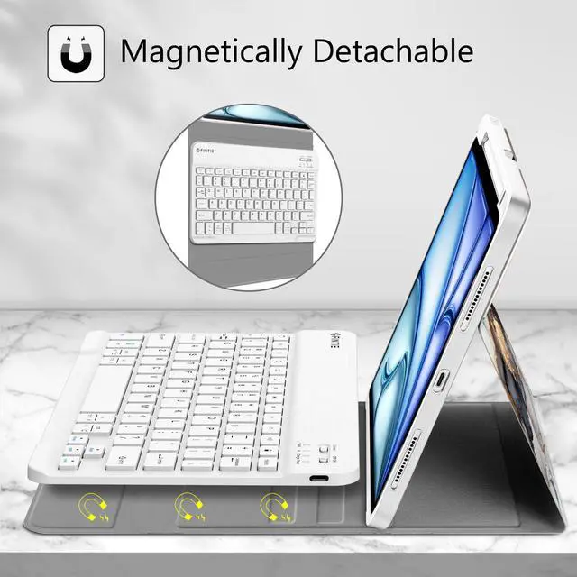 FINTIE Keyboard Case for iPad Air 11-inch M3 (2025) / M2 (2024), iPad Air 5th (2022) / 4th Generation 10.9 Inch - Soft TPU Cover w/Magnetically Detachable Bluetooth Keyboard, Cloudy Marble