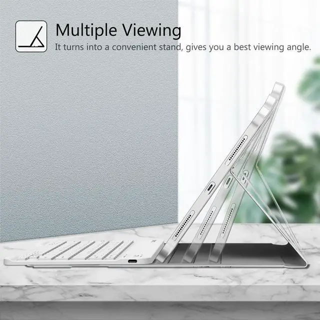 Turn Your Tablet into a Laptop: A Keyboard that supports iOS and Android Systems. Experience seamless operation with no need for switching. Magnetically detachable super slim 7mm and light weight bluetooth keyboard with 14M range. Ergonomic and mechanic