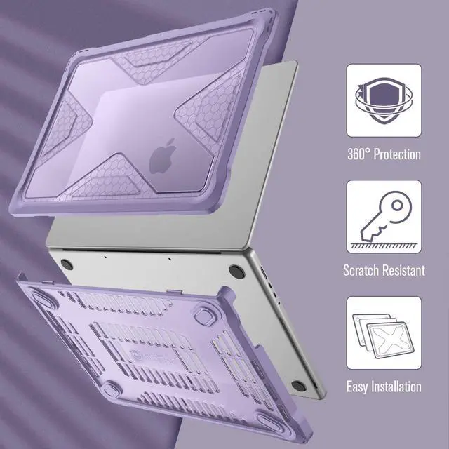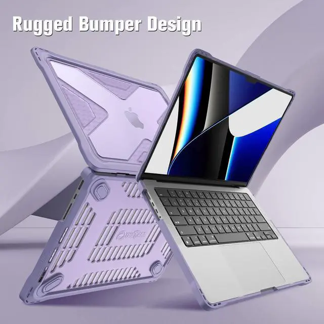 Fintie Case for MacBook Pro 14 Inch A3401 A3185 A3112 A2992 A2918 A2779 A2442 with M4 M3 M2 M1 Chip (2024 2023 2022 2021 Release) - Heavy Duty Rugged Hard Shell Case Cover with TPU Bumper, Lilac