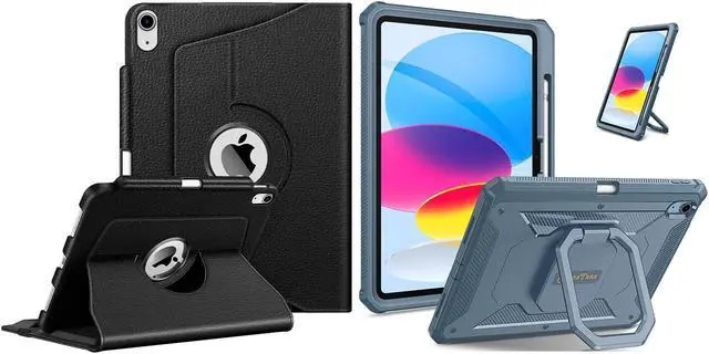 This Bundle Contains: 1x iPad (A16) 11th Generation 11 Inch (2025), iPad 10th Generation 10.9 Inch (2022) 360 Degree Rotating Case + 1x 360 Degree Rotating Grip Stand Cover
