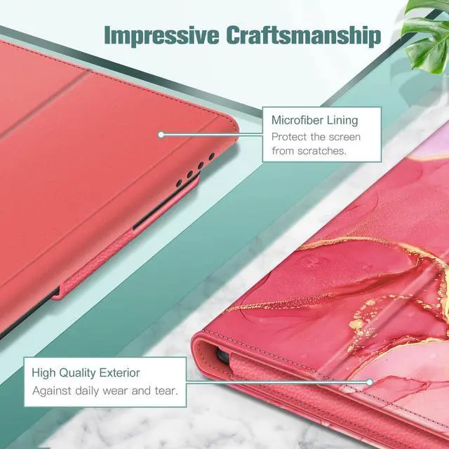 Fintie Folio Case for All-New Amazon Fire HD 10 and 10 Plus Tablet (13th/11th Generation, 2023/2021 Release) - Slim Fit Standing Cover with Auto Sleep/Wake, Marble Pink