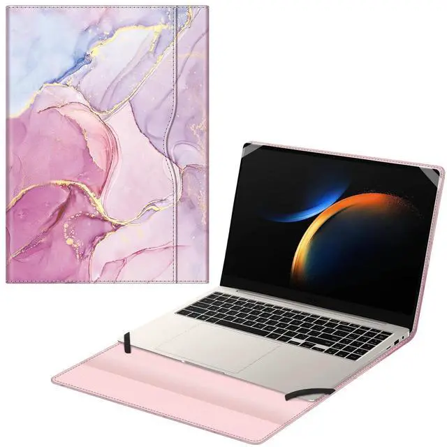 This Fintie 16" Samsung Galaxy Book3 Pro 360 Case is a must have and perfect companion for an easy and enjoying life. This case sports a simple and classy design made from synthetic leather, and the interior is lined with soft microfiber so you don't need to worry about any damages.