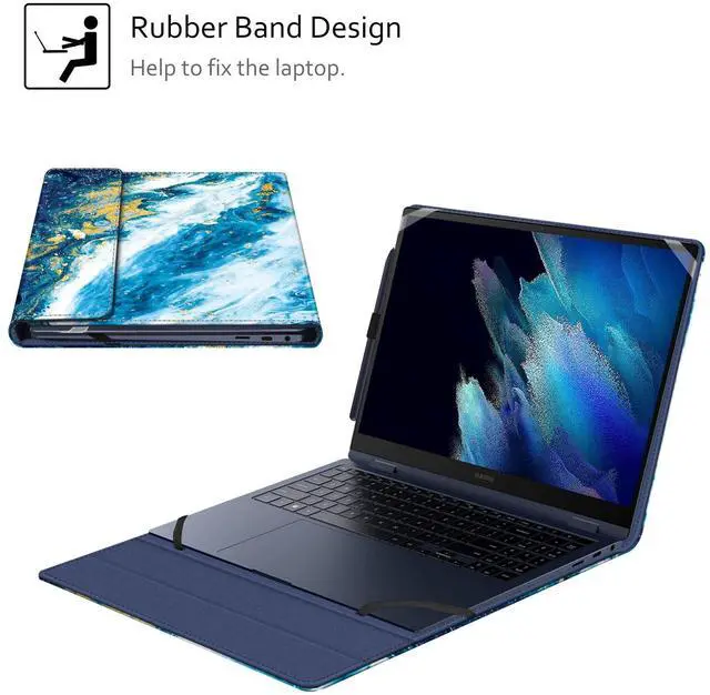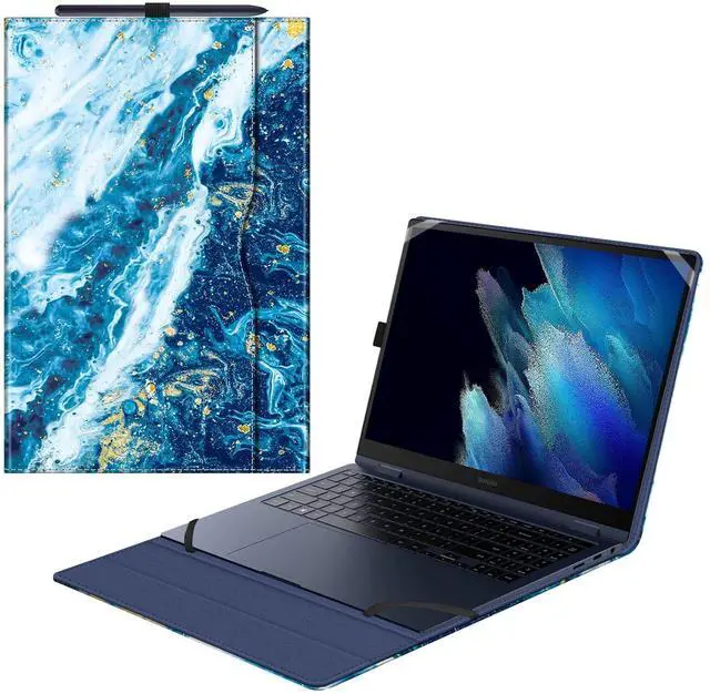 This Fintie 15.6" Samsung Galaxy Book2 Pro 360 Case is a must have and perfect companion for an easy and enjoying life. This case sports a simple and classy design made from synthetic leather, and the interior is lined with soft microfiber so you don't need to worry about any damages. Case design lets you Open/Close your laptop all the way and access to all ports.