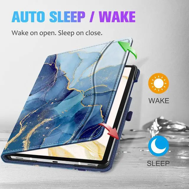 Fintie Case for Samsung Galaxy Tab S10+/ S9+/ S8+/ S7 FE/ S7+ 12.4 Inch, Multi-Angle Viewing Protective Cover with Pocket, Auto Sleep/Wake, Ocean Marble