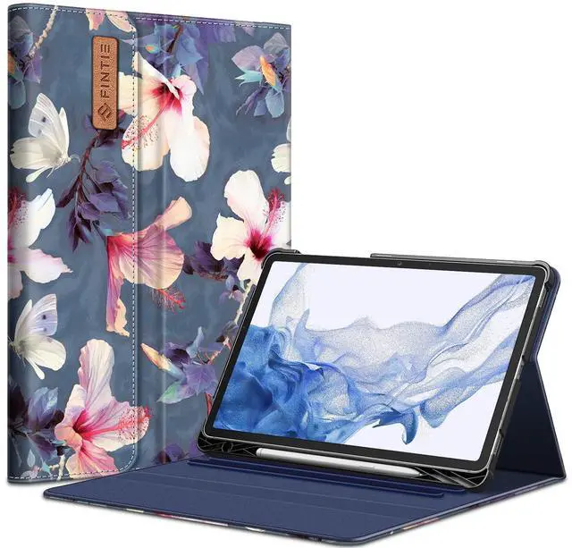 Fintie Case for Samsung Galaxy Tab S8/Tab S7 11 Inch (Model SM-X700/X706/T870/T875/T878) with Built-in S Pen Holder, Multiple Angle Portfolio Business Cover with Pocket Auto Sleep/Wake, Hibiscus
