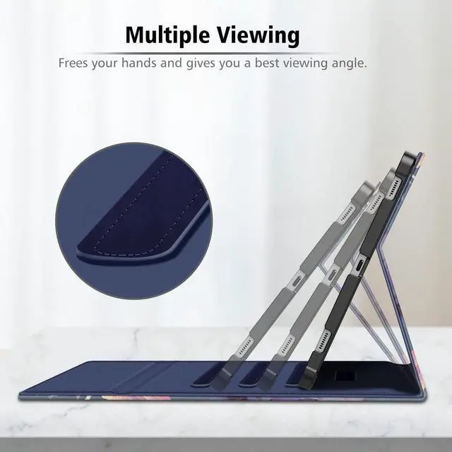 Multiple Viewing Angles: Three anti-slip stripes allow you to adjust the tablet to multiple angles securely. Built-in magnetic strip provides sleep / wake feature