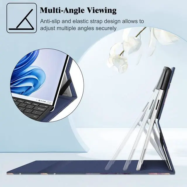 Unique design ensures Microsoft Surface Pro 11/10/9 original built-in kickstand to be used at will for multi-viewing angles. Extra pocket allows to store small items, such as business card or USB charging cable if in need. Tips: The elastic strap is to secure the surface pro 9's kickstand, not to the tablet screen.