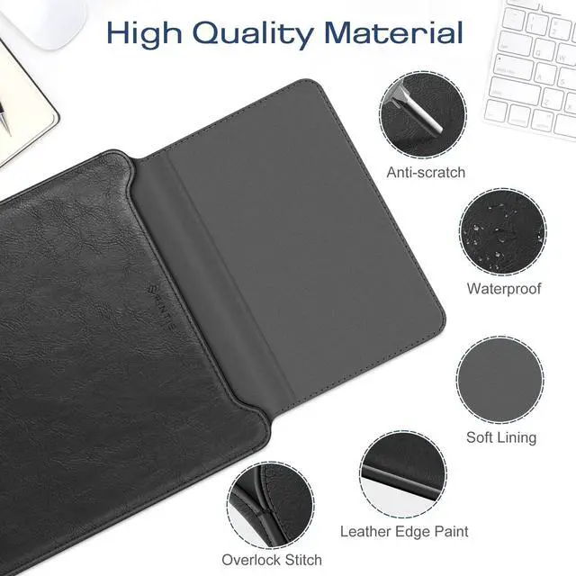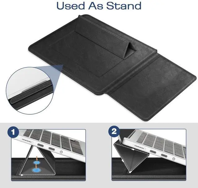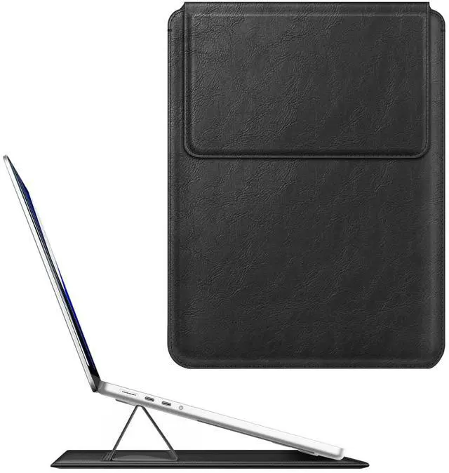 Fintie Sleeve Case for MacBook Air 13.6 A3240 A3113 A2681, Pro 14 A3434 A3401 A3185 A3112 A2992 A2918 A2779 A2442, MacBook Pro/Air 13 - PU Leather Slim Bag Cover with Stand Feature, Black