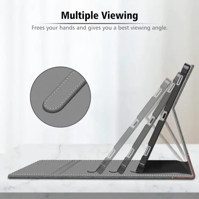 Multiple Viewing Angles: Three anti-slip stripes allow you to adjust the tablet to multiple angles securely. Built-in magnetic strip provides sleep / wake feature