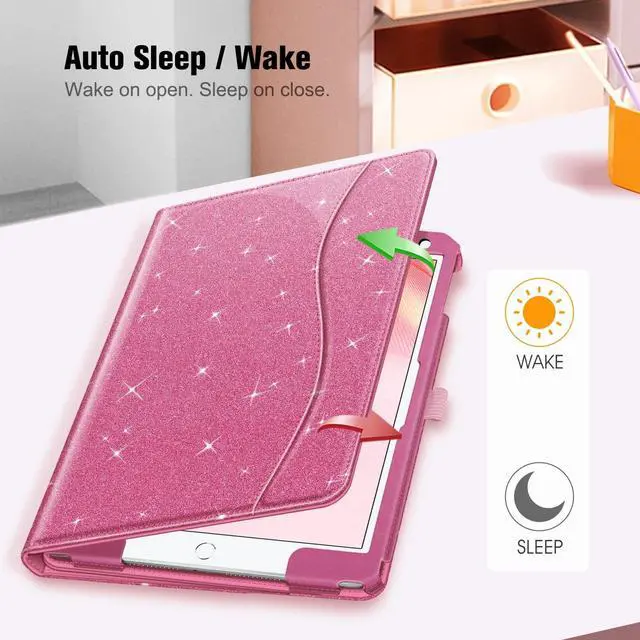 Fintie Case for iPad 9th / 8th / 7th Generation (2021/2020/2019) 10.2 Inch - [Corner Protection] Multi-Angle Viewing Stand Cover with Pocket & Pencil Holder, Auto Sleep Wake, Glittering Pink
