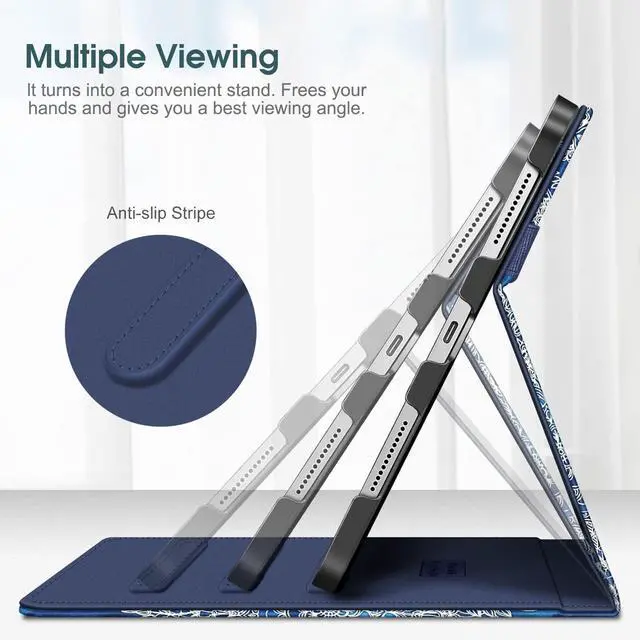 Number: A2696 / A2757 / A2777 / A3162). Not compatible with any other devices. ^^ Built from premium synthetic leather exterior and soft microfiber interior - snug fit, durable and protective. ^^ Easy clip-on application. Built-in magnetic strip provides sleep / wake feature. ^^ Built-in pencil holder securely carries and protects your Apple Pencil (USB-C) or Apple Pencil 1st Gen wherever you go. A hole is designed behind the holder for pushing your pencil out easily. ^^ This case allows you to adjust the iPad to multiple angles securely. Document Card Pocket is designed for you to store your business cards, bank cards, notes or bills while on the go. (Official Micklyn Le Feuvre product. )