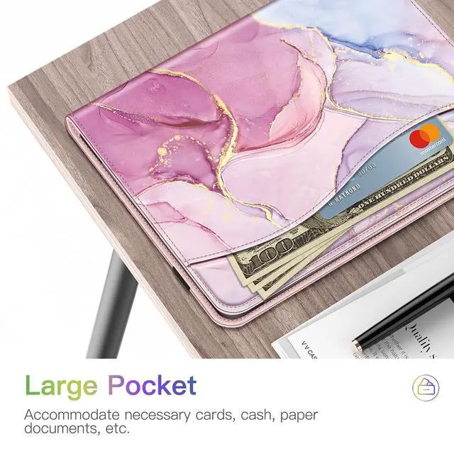 • This case allows you to adjust the iPad to multiple angles securely. Document Card Pocket is designed for you to store your business cards, bank cards, notes or bills while on the go.