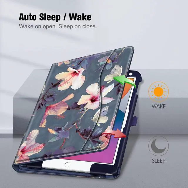 Number: A2197/A2200/A2198) 10.2" Tablet. Not compatible with any other devices. ^^ This case allows you to adjust the iPad to multiple angles securely. Document Card Pocket is designed for you to store your business cards, bank cards, notes or bills while on the go. ^^ Built from premium synthetic leather exterior and soft microfiber interior - snug fit, durable and protective. ^^ Built-in magnetic strip provides sleep/wake feature. Cut outs allow access to Charge Port and Speakers. Headphones Jack and Volume can be accessed while in case. ^^ Protect your iPad from scratches, dirt and grime. Available in a variety of bright and fun colors. (Official Micklyn Le Feuvre product. )