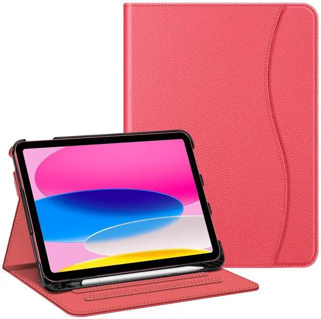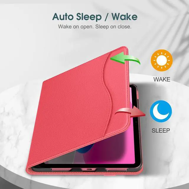 Number: A2696 / A2757 / A2777 / A3162). Not compatible with any other devices. ^^ Built from premium synthetic leather exterior and soft microfiber interior - snug fit, durable and protective. ^^ Easy clip-on application. Built-in magnetic strip provides sleep / wake feature. ^^ Built-in pencil holder securely carries and protects your Apple Pencil (USB-C) or Apple Pencil 1st Gen wherever you go. A hole is designed behind the holder for pushing your pencil out easily. ^^ This case allows you to adjust the iPad to multiple angles securely. Document Card Pocket is designed for you to store your business cards, bank cards, notes or bills while on the go.
