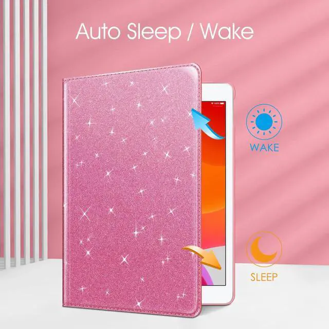 Fintie Rotating Case for iPad 9th Generation (2021) / 8th Generation (2020) / 7th Gen (2019) 10.2 Inch - 360 Degree Rotating Stand Cover with Pencil Holder, Auto Wake Sleep, Glittering Pink