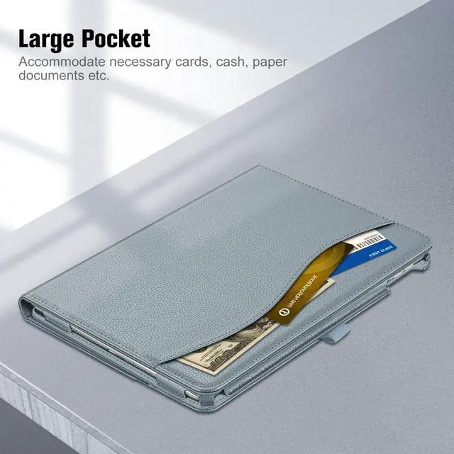 • This case allows you to adjust the iPad to multiple angles securely. Document Card Pocket is designed for you to store your business cards, bank cards, notes or bills while on the go.