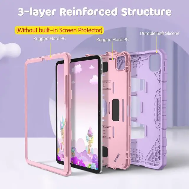 ^^ Safety Protection: Specifically designed with children in mind, providing comprehensive safety protection. This 3-layer shockproof heavy duty rugged protective case is made from flexible silicone and durable hard PC impact-resistant materials to effectively prevent accidental drops, bumps and falls.