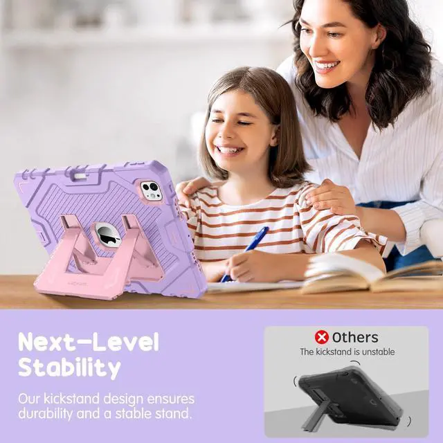 ^^ Comfortable Viewing Angles: The kickstand is designed with a versatile angle adjustment function, allowing children to choose optimal vertical and horizontal positions (2 Modes) according to their preferences. Whether watching videos, playing games, or engaging in educational activities, they can enjoy the best visual experience. ^^ Seamlessly supports Apple Pencil Pro magnetic and wireless charging when case is on. Built-in Pencil holder securely carries and protects your pencil wherever you go. A hole is designed behind the holder for pushing your pencil out easily.