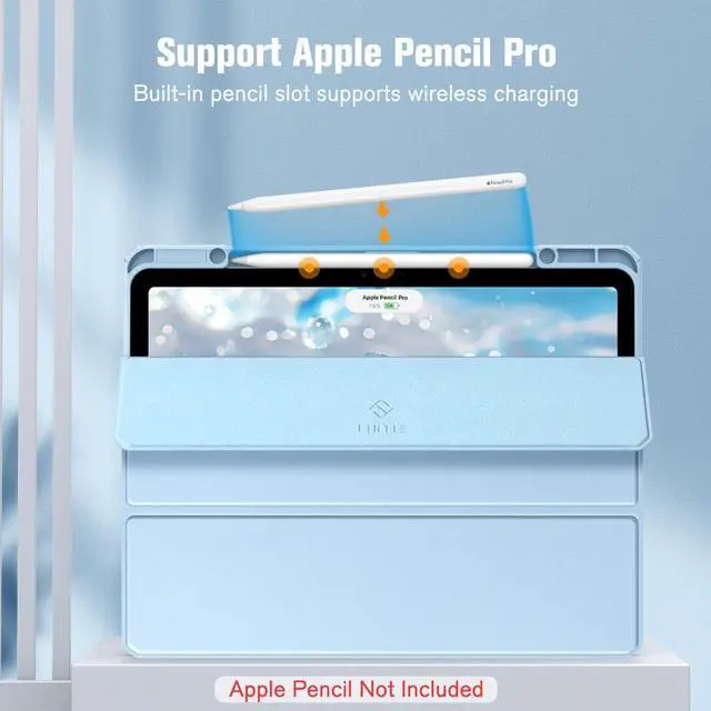 Number: A2898/A2899/A2900). Not fit any other iPad models. Please check back bottom of your iPad to find the model number. ^^ Hardshell back cover with flexible TPU bumper protects your iPad from shocks, drops and impacts. Soft microfiber interior front prevents your tablet from scratched. And the crystal clear back cover will proudly show off the Apple icon. ^^ Built-in Pencil holder, grab your Pencil Pro effortlessly whenever you want, easily to carry your iPad pencil with your device. (Case only, other accessories not included! ). ^^ Seamlessly supports Apple Pencil Pro magnetic and wireless charging when case is on. Tri-fold front cover has flip capability to transform the iPad Air 13-inch (M3) 2025 / (M2) 2024 case into a viewing stand and keyboard stand. ^^ Easy clip-on application. With built-in magnets, automatically wakes or puts your device to sleep when the lid is opened and closed.