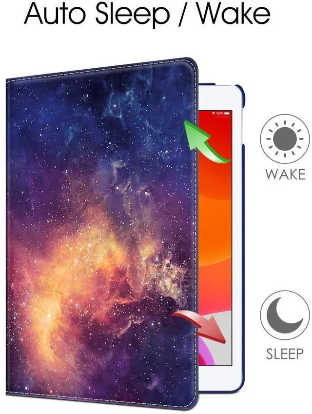 Number: A2197/A2200/A2198) 10.2" Tablet. ^^ 360 degree rotating structure in the case for flexible landscape and portrait viewing. Automatically wakes or puts your device to sleep. ^^ Snap-n-roll design-easily snaps into mount (simply snap on left side first, then right side). Dual Layer hard interior cover and premium synthetic leather exterior perfectly protects the device against scratches. ^^ Built-in Apple Pencil/Cap/Adapter slots, grab your Apple Pencil and adapter effortlessly whenever you want, easily to carry your Apple pencil with your device. Apple Pencil/Cap/Adapter not included! (NOTE: Given the design of the case, the hole has to be centered on the shell to insure proper balance while using the tablet stand and to insure proper protection of Apple Pencil, which causes the logo to be slightly off-center. ) ^^ Elastic band holds iPad closed securely while on the go. Available in a variety of bright and fun colors. This product is covered by one or more of the following US Patent Nos. 8, 746, 449; 8, 783, 458; 9, 170, 611; 10, 139, 861.