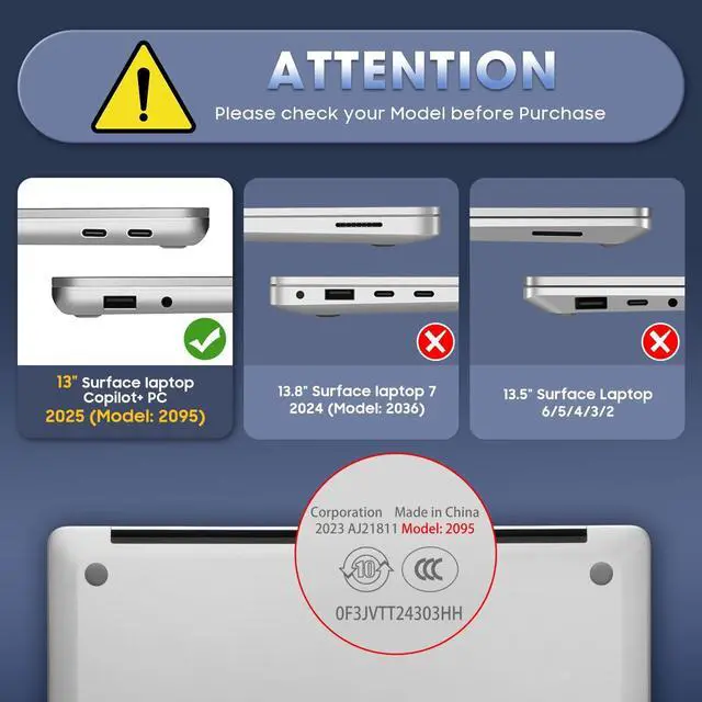 WARNING: This Microsoft Surface laptop case 13 inch fits ONLY the 2025 Model 2095will NOT fit 13.8" Surface Laptop 7, 13.5 inch Surface Laptop 6/5/4/3/2/1, Surface Laptop Go, Surface Book, Surface Pro, Surface Go, or any other device.