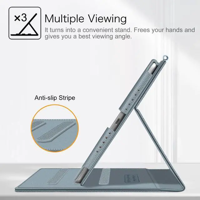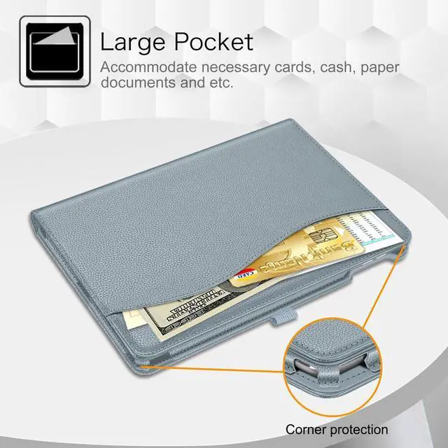 • This case allows you to adjust the iPad to multiple angles securely. Document Card Pocket is designed for you to store your business cards, bank cards, notes or bills while on the go.