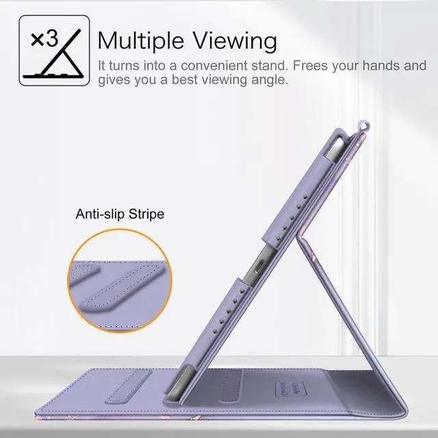 • This case allows you to adjust the iPad to multiple angles securely. Document Card Pocket is designed for you to store your business cards, bank cards, notes or bills while on the go.