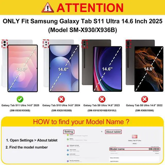 Perfect Compatibility: This case is compatible with Samsung Galaxy Tab S11 Ultra 5G 14.6 inch (Model SM-X930/X936B) 2025 Release Tablet. It will NOT work for any other model device. Please double check the model number before purchasing ^^