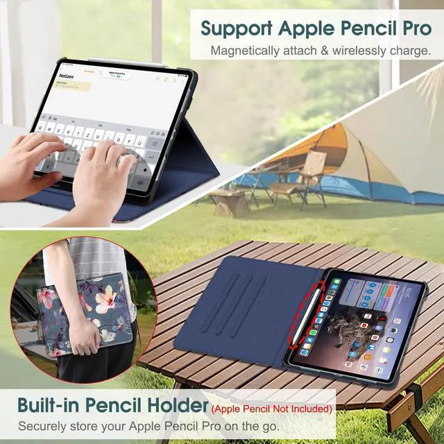 Number: A2898/A2899/A2900). Not fit any other iPad models. Please check back bottom of your iPad to find the model number. ^^ Seamlessly supports Apple Pencil Pro magnetic and wireless charging when case is on. Built-in Pencil holder securely carries and protects your Apple Pencil Pro wherever you go. A hole is designed behind the holder for pushing your pencil out easily. (Case only, other accessories not included! ). ^^ Easy clip-on application. Built-in magnetic strip automatically wakes or puts your device to sleep when the lid is opened and closed. ^^ Built from premium composition leather exterior and soft microfiber interior - snug fit, durable and protective. ^^ This case allows you to adjust the iPad to multiple angles securely. Document Card Pocket is designed for you to store your business cards, bank cards, notes or bills. (Official Micklyn Le Feuvre product).