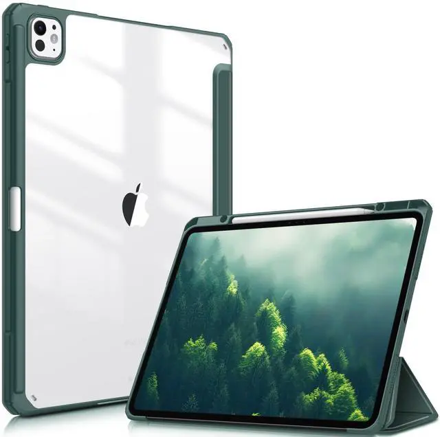 Number: A2925/A2926/A3007). Not fit any other iPad models. Please check back bottom of your iPad to find the model number. ^^ Hardshell back cover with flexible TPU bumper protects your iPad from shocks, drops and impacts. Soft microfiber interior front prevents your tablet from scratched. And the crystal clear back cover will proudly show off the Apple icon. ^^ Built-in Pencil holder, grab your pencil pro effortlessly whenever you want, easily to carry your iPad pencil with your device. (Case only, other accessories not included! ). ^^ Seamlessly supports Pencil Pro magnetic and wireless charging when case is on. Tri-fold front cover has flip capability to transform the iPad Pro 13 case into a viewing stand and keyboard stand. ^^ Easy clip-on application. With built-in magnets, automatically wakes or puts your device to sleep when the lid is opened and closed.
