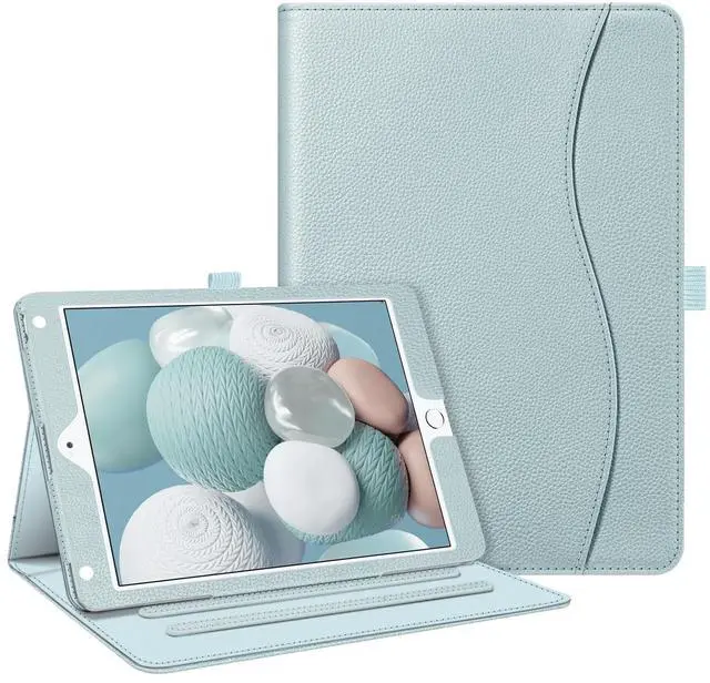 Specifically designed for iPad 6th Generation 9.7 Inch 2018 (A1893/A1954), iPad 5th Generation 9.7 Inch 2017 (A1822/A1823), iPad Air 2 9.7 Inch 2014 (A1566/A1567), iPad Air 1 9.7 Inch 2013 (A1474/A1475/A1476) ^^ This case allows you to adjust the iPad to multiple angles securely. Document Card Pocket is designed for you to store your business cards, bank cards, notes or bills while on the go. ^^ Built from premium composition leather exterior and soft microfiber interior - snug fit, durable and protective. ^^ Built-in magnetic strip provides sleep/wake feature. Cut outs allow access to Charge Port and Speakers.