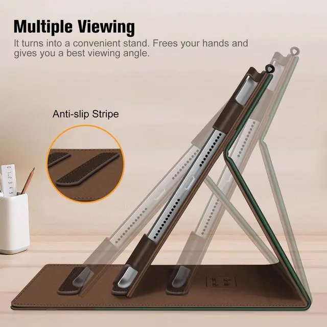 Number: A2197/A2200/A2198) 10.2" Tablet. ^^ This case allows you to adjust the iPad to multiple angles securely. Document Card Pocket is designed for you to store your business cards, bank cards, notes or bills while on the go. ^^ Built from premium synthetic leather exterior and soft microfiber interior - snug fit, durable and protective. ^^ Built-in magnetic strip provides sleep/wake feature. Cut outs allow access to Charge Port and Speakers. Headphones Jack and Volume can be accessed while in case. ^^ Protect your iPad from scratches, dirt and grime. Available in a variety of bright and fun colors.