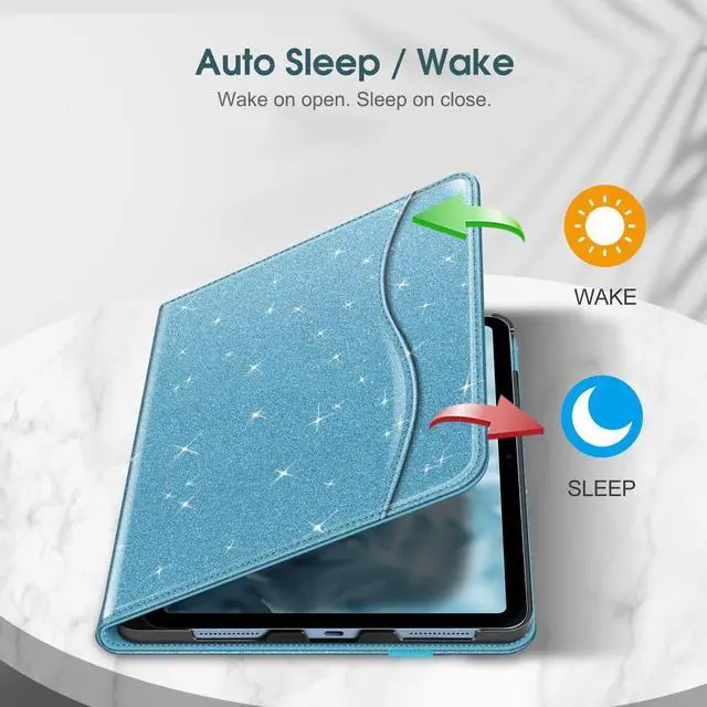 Fintie Case for iPad (A16) 11th Generation 11 Inch (2025), iPad 10th Generation 10.9 Inch (2022), Multi-Angle Viewing Protective Stand Cover with Pencil Holder & Pocket, Glittering Blue