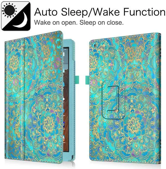 Compatibility: Fire HD 10 (9th Generation, 2019 Release)Fire HD 10 (7th Generation, 2017 Release)Fire HD 10 (5th Generation, 2015 Release)Introducing this Fintie Folio Premium PU leather Case - Stand it, Store it and Go! The Fintie Folio case perfectly fits your Fire HD 10 tablet! It sports a simple and classy design made from premium synthetic leather, and the interior is lined with soft microfiber material that protects your tablet from prints, dirt and scratches. A smart holder is designed to hold your stylus pen. Because the cover is uniquely designed to flip back and transform the case into a viewing stand or keyboard stand, this capability allows the viewer to use the tablet hands-free when watching. It offers an ideal way to protect your tablet wherever you go.