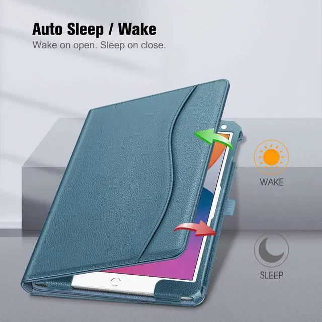 Number: A2197/A2200/A2198) 10.2" Tablet. ^^ This case allows you to adjust the iPad to multiple angles securely. Document Card Pocket is designed for you to store your business cards, bank cards, notes or bills while on the go. ^^ Built from premium synthetic leather exterior and soft microfiber interior - snug fit, durable and protective. ^^ Built-in magnetic strip provides sleep/wake feature. Cut outs allow access to Charge Port and Speakers. Headphones Jack and Volume can be accessed while in case. ^^ Protect your iPad from scratches, dirt and grime. Available in a variety of bright and fun colors.