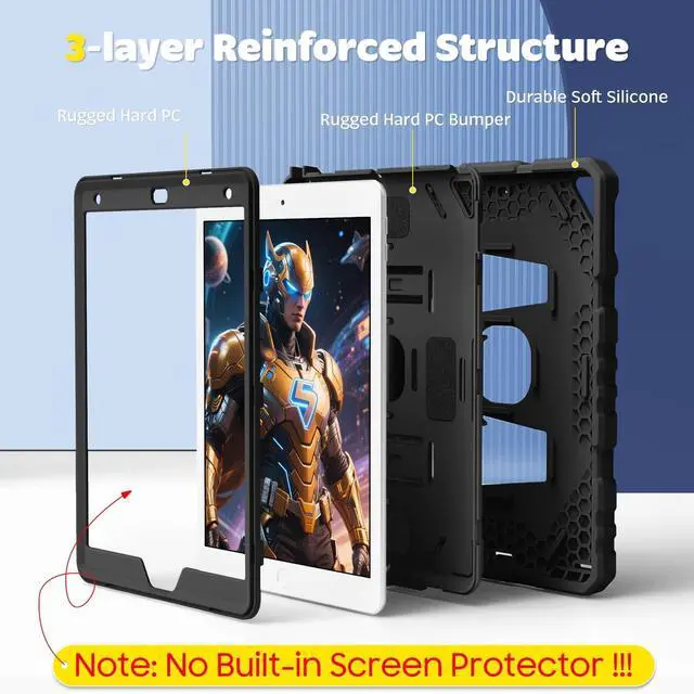 ^^ Safety Protection: Specifically designed with children in mind, providing comprehensive safety protection. This 3-layer shockproof heavy duty rugged protective case is made from flexible silicone and durable hard PC impact-resistant materials to effectively prevent accidental drops, bumps and falls.