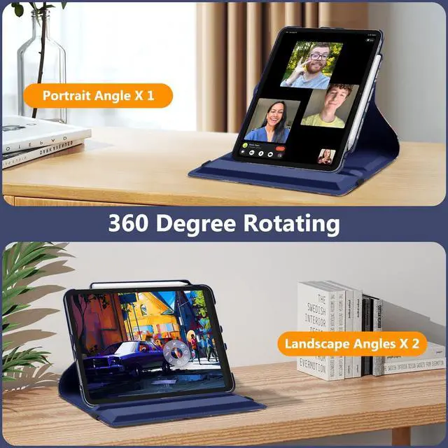 Number: A2836/A2837/A3006), not compatible with any other iPad Pro 11 Inch devices. ^^ 360 degree rotating structure in the case for flexible landscape and portrait viewing. Automatically wakes or puts your device to sleep. Snap-n-roll design-easily snaps into mount (simply snap on left side first, then right side). ^^ Seamlessly works with Apple Pencil Pro magnetic and wireless charging when case is on. Elastic band holds iPad closed securely while on the go. ^^ Built-in pencil holder, grab your Apple Pencil Pro or Apple Pencil (USB-C) effortlessly whenever you want, easily to carry your iPad pencil with your device. (Pencil not included! ) ^^ Dual Layer hard interior cover and premium synthetic leather exterior perfectly protects the device against scratches. Available in a variety of bright and fun colors. This product is covered by one or more of the following US Patent Nos. 8, 746, 449; 8, 783, 458; 9, 170, 611; 10, 139, 861.