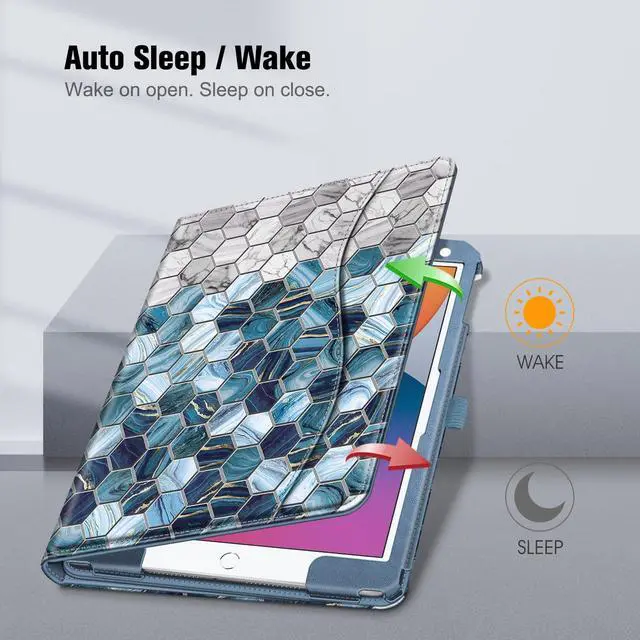 Number: A2197/A2200/A2198) 10.2" Tablet. ^^ This case allows you to adjust the iPad to multiple angles securely. Document Card Pocket is designed for you to store your business cards, bank cards, notes or bills while on the go. ^^ Built from premium synthetic leather exterior and soft microfiber interior - snug fit, durable and protective. ^^ Built-in magnetic strip provides sleep/wake feature. Cut outs allow access to Charge Port and Speakers. Headphones Jack and Volume can be accessed while in case. ^^ Protect your iPad from scratches, dirt and grime. Available in a variety of bright and fun colors.