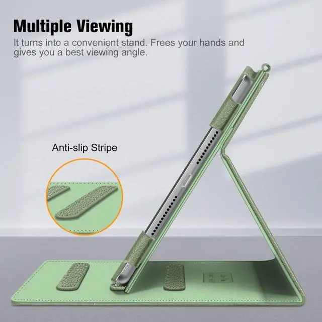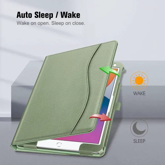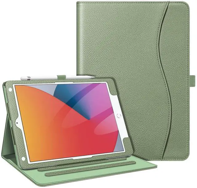 Number: A2197/A2200/A2198) 10.2" Tablet. ^^ This case allows you to adjust the iPad to multiple angles securely. Document Card Pocket is designed for you to store your business cards, bank cards, notes or bills while on the go. ^^ Built from premium synthetic leather exterior and soft microfiber interior - snug fit, durable and protective. ^^ Built-in magnetic strip provides sleep/wake feature. Cut outs allow access to Charge Port and Speakers. Headphones Jack and Volume can be accessed while in case. ^^ Protect your iPad from scratches, dirt and grime. Available in a variety of bright and fun colors.