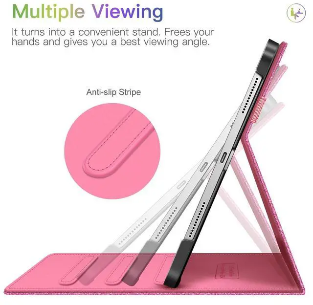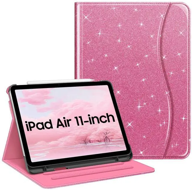 Fintie Case for iPad Air 11-inch M3 (2025) / M2 (2024), iPad Air 5th (2022) / 4th Generation (2020) 10.9 Inch, Multi-Angle Viewing Protective Cover with Pencil Holder & Pocket, Glittering Pink