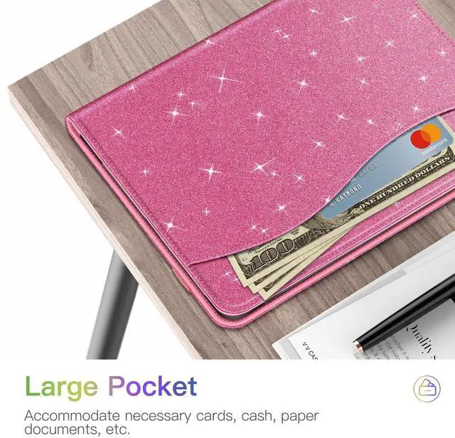 • This case allows you to adjust the iPad to multiple angles securely. Document Card Pocket is designed for you to store your business cards, bank cards, notes or bills while on the go.