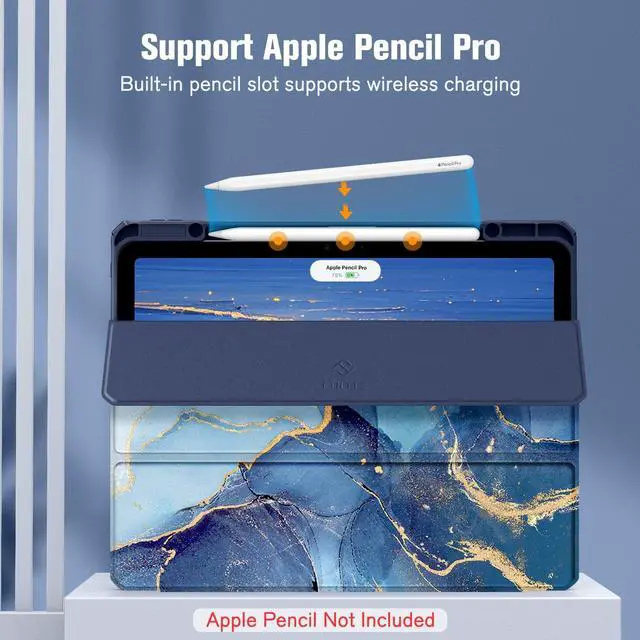 Number: A2898/A2899/A2900). Not fit any other iPad models. Please check back bottom of your iPad to find the model number. ^^ Hardshell back cover with flexible TPU bumper protects your iPad from shocks, drops and impacts. Soft microfiber interior front prevents your tablet from scratched. And the crystal clear back cover will proudly show off the Apple icon. ^^ Built-in Pencil holder, grab your Pencil Pro effortlessly whenever you want, easily to carry your iPad pencil with your device. (Case only, other accessories not included! ). ^^ Seamlessly supports Apple Pencil Pro magnetic and wireless charging when case is on. Tri-fold front cover has flip capability to transform the iPad Air 13-inch (M3) 2025 / (M2) 2024 case into a viewing stand and keyboard stand. ^^ Easy clip-on application. With built-in magnets, automatically wakes or puts your device to sleep when the lid is opened and closed.