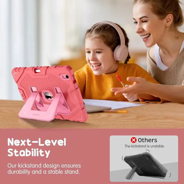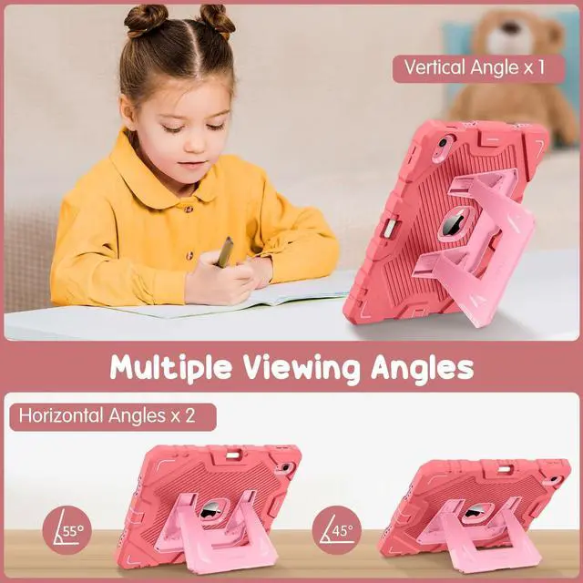 ^^ Comfortable Viewing Angles: The kickstand is designed with a versatile angle adjustment function, allowing children to choose optimal vertical and horizontal positions (2 Modes) according to their preferences. Whether watching videos, playing games, or engaging in educational activities, they can enjoy the best visual experience. ^^ Built-in pencil holder, grab your Apple Pencil (USB-C) or Apple Pencil 1st Gen effortlessly whenever you want, easily to carry your iPad pencil with your device. (Apple Pencil not included! ) ^^