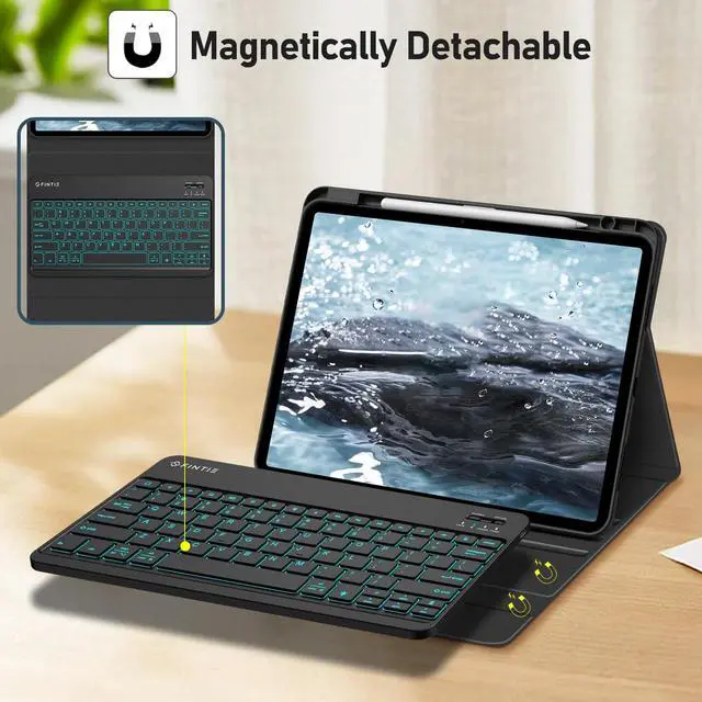 • Turn Your Tablet into a Laptop: A Keyboard that supports iOS and Android Systems. Experience seamless operation with no need for switching. Magnetically detachable super slim 7mm and light weight bluetooth keyboard with 14M range. Ergonomic and mechanical scissor keys with rebound feature to reduce noise, enjoy comfortabl
