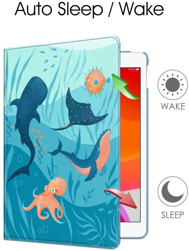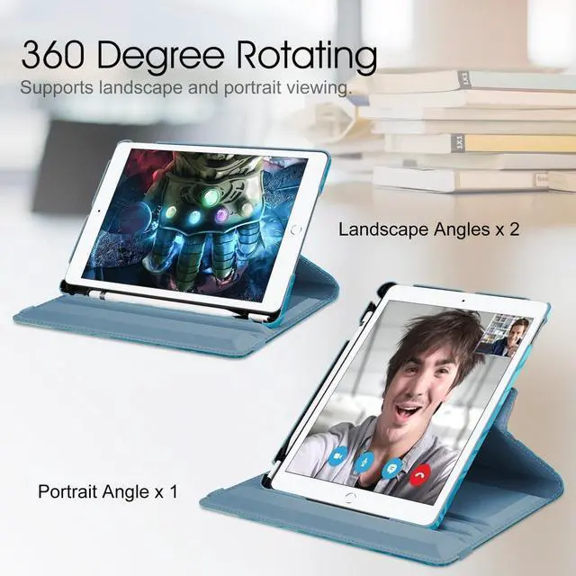 Number: A2197/A2200/A2198) 10.2" Tablet. ^^ 360 degree rotating structure in the case for flexible landscape and portrait viewing. Automatically wakes or puts your device to sleep. ^^ Snap-n-roll design-easily snaps into mount (simply snap on left side first, then right side). Dual Layer hard interior cover and premium synthetic leather exterior perfectly protects the device against scratches. ^^ Built-in Apple Pencil/Cap/Adapter slots, grab your Apple Pencil and adapter effortlessly whenever you want, easily to carry your Apple pencil with your device. Apple Pencil/Cap/Adapter not included! (NOTE: Given the design of the case, the hole has to be centered on the shell to insure proper balance while using the tablet stand and to insure proper protection of Apple Pencil, which causes the logo to be slightly off-center. ) ^^ Elastic band holds iPad closed securely while on the go. Available in a variety of bright and fun colors. This product is covered by one or more of the following US Patent Nos. 8, 746, 449; 8, 783, 458; 9, 170, 611; 10, 139, 861.