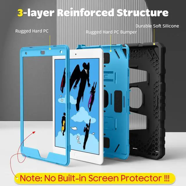 ^^ Safety Protection: Specifically designed with children in mind, providing comprehensive safety protection. This 3-layer shockproof heavy duty rugged protective case is made from flexible silicone and durable hard PC impact-resistant materials to effectively prevent accidental drops, bumps and falls.
