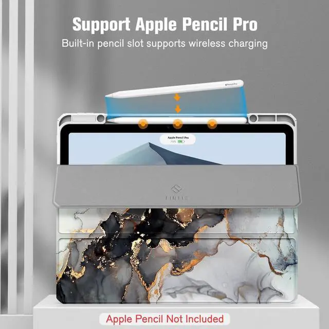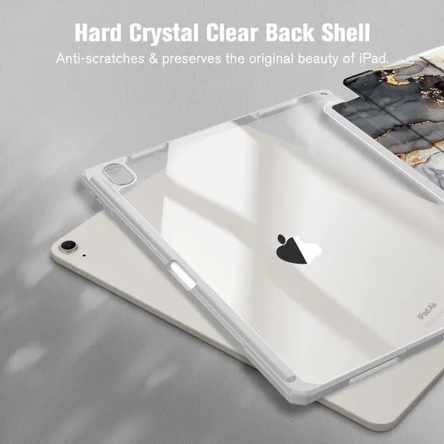 Number: A2898/A2899/A2900). Not fit any other iPad models. Please check back bottom of your iPad to find the model number. ^^ Hardshell back cover with flexible TPU bumper protects your iPad from shocks, drops and impacts. Soft microfiber interior front prevents your tablet from scratched. And the crystal clear back cover will proudly show off the Apple icon. ^^ Built-in Pencil holder, grab your Pencil Pro effortlessly whenever you want, easily to carry your iPad pencil with your device. (Case only, other accessories not included! ). ^^ Seamlessly supports Apple Pencil Pro magnetic and wireless charging when case is on. Tri-fold front cover has flip capability to transform the iPad Air 13-inch (M3) 2025 / (M2) 2024 case into a viewing stand and keyboard stand. ^^ Easy clip-on application. With built-in magnets, automatically wakes or puts your device to sleep when the lid is opened and closed.