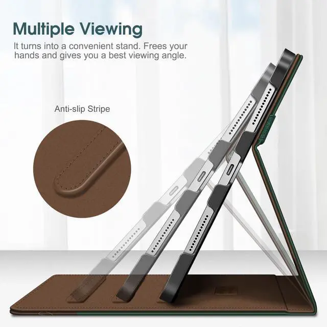 Number: A2696 / A2757 / A2777 / A3162). Not compatible with any other devices. ^^ Built from premium synthetic leather exterior and soft microfiber interior - snug fit, durable and protective. ^^ Easy clip-on application. Built-in magnetic strip provides sleep / wake feature. ^^ Built-in pencil holder securely carries and protects your Apple Pencil (USB-C) or Apple Pencil 1st Gen wherever you go. A hole is designed behind the holder for pushing your pencil out easily. ^^ This case allows you to adjust the iPad to multiple angles securely. Document Card Pocket is designed for you to store your business cards, bank cards, notes or bills while on the go.