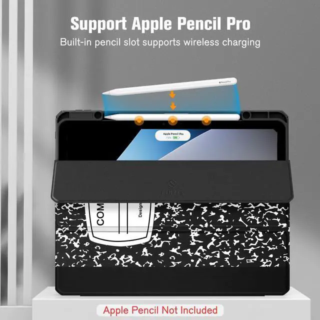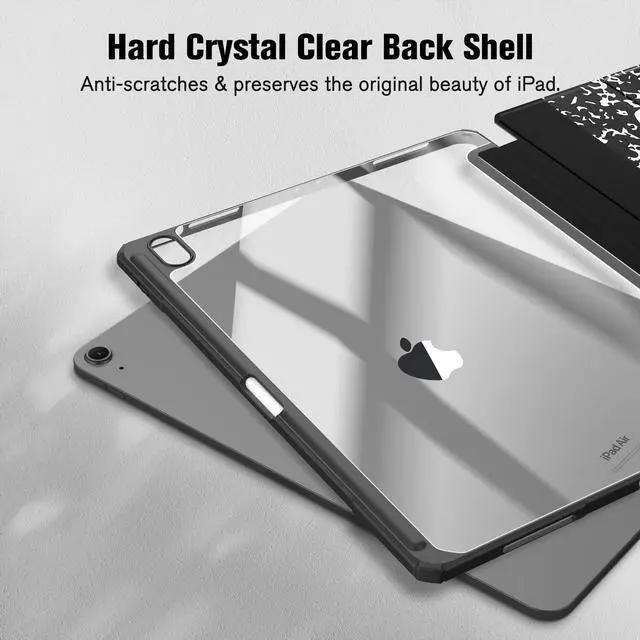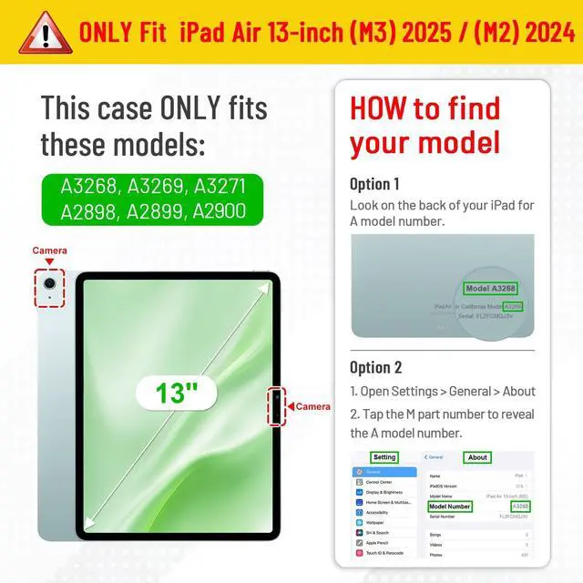 Number: A2898/A2899/A2900). Not fit any other iPad models. Please check back bottom of your iPad to find the model number. ^^ Hardshell back cover with flexible TPU bumper protects your iPad from shocks, drops and impacts. Soft microfiber interior front prevents your tablet from scratched. And the crystal clear back cover will proudly show off the Apple icon. ^^ Built-in Pencil holder, grab your Pencil Pro effortlessly whenever you want, easily to carry your iPad pencil with your device. (Case only, other accessories not included! ). ^^ Seamlessly supports Apple Pencil Pro magnetic and wireless charging when case is on. Tri-fold front cover has flip capability to transform the iPad Air 13-inch (M3) 2025 / (M2) 2024 case into a viewing stand and keyboard stand. ^^ Easy clip-on application. With built-in magnets, automatically wakes or puts your device to sleep when the lid is opened and closed.